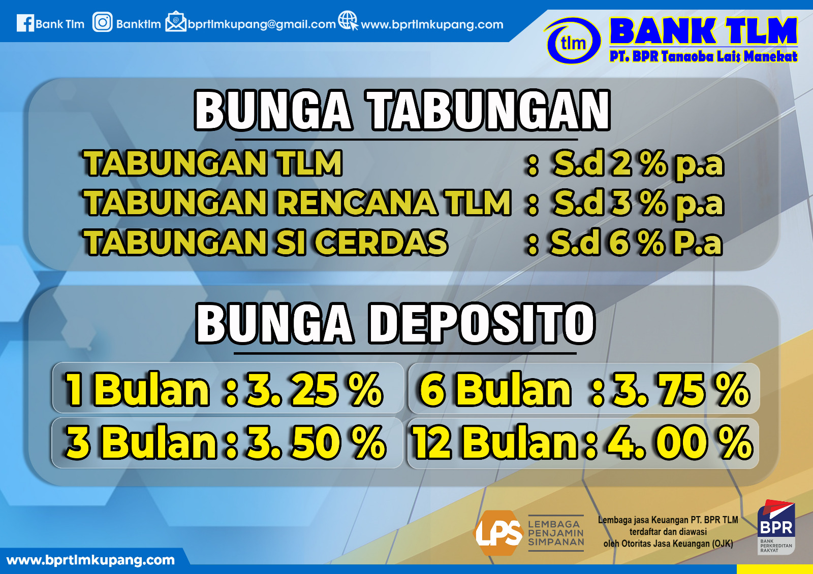 INFO TERKINI Terbaik 1 Kategori Usaha Besar - Menengah dan Terbaik 1 Kategori Usaha Besar - Menengah Sektor Jasa Keuangan Tingkat Bunga Penjaminan Pengumuman Perubahan Nama Info Tabungan